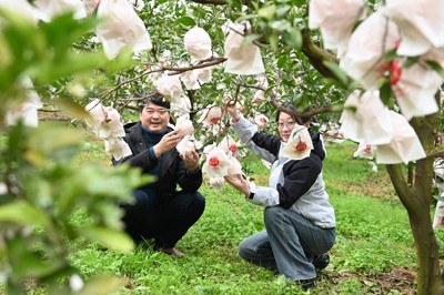 55歲的21組果農(nóng)張漢成,夫妻倆勤勞而且肯學(xué)技術(shù),以畝產(chǎn)量高、品質(zhì)好成為當(dāng)?shù)氐男б婷凹鈶簦彩鞘∈忻襟w多年來(lái)采訪的“專業(yè)戶”,夫妻倆早就成為媒體人的老朋友了。