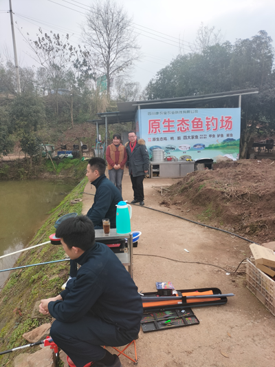 高坪青蓮康農(nóng)寶,放水養(yǎng)魚潤天色,三塘映月魚兒躍,釣叟排排釣活魚。2025年1月19日,南充市紅色文化研究會紅色農(nóng)業(yè)專業(yè)委員會主任劉翰蔚一行10人,來到高坪區(qū)青蓮鎮(zhèn)南充康農(nóng)寶公司養(yǎng)漁基地,召開鄉(xiāng)村產(chǎn)業(yè)振興致富坐談會。大家一起觀看到3口魚塘整齊劃一,在藍(lán)天白云下池水閃現(xiàn)著粼粼波光。鱖魚成群結(jié)隊在水中暢游,正在迎接堤岸上成群結(jié)對的釣叟把自己釣上岸。